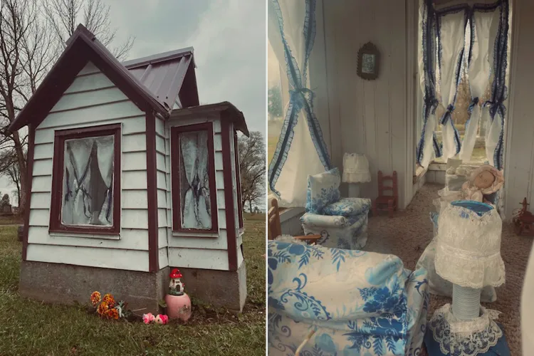 The two girls, Vivian May Allison and Lova Cline, were born just a few years apart in the late 1800s and early 1900s. Both tragically died young — Vivian at 5 years old in 1899, and Lova at age 6 in 1908. And in both cases, their parents turned their sorrow into artful memorials, building dollhouse-style tributes on their daughters’ graves — places filled with personal artifacts, mini furniture, and reminders of the childhoods they never got to finish.