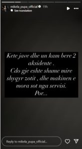Në një postim të sinqertë në rrjetet sociale, Mikela ka rrëfyer se gjatë kësaj jave ka pësuar dy aksidente rrugore me makinën e saj. Edhe pse të dy rastet fatmirësisht përfunduan pa pasoja serioze për jetën, ajo pranoi se momentet që përjetoi ishin shumë të frikshme, sidomos për shkak të një arsyeje të veçantë.