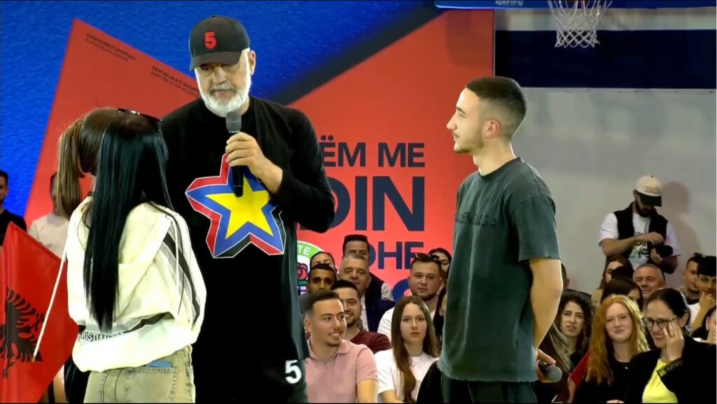 Teksa fliste gjerë e gjatë për misionin kryesor të shqiptarëve që është rruga drejt Bashkimit Evropian, i tërhoqën vëmendjen 3 të rinj. I mori në podiumin ku po mbante fjalën, për t’ju përsëritur se fokusi duhet të jetë te pasaporta europiane dhe jo fjalët vesh më vesh me njëri-tjetrin.