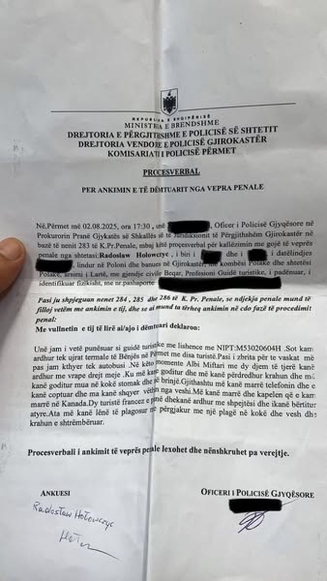 Një incident i rëndë ka ndodhur më 2 gusht në ujërat termale pranë Përmetit, ku guida turistike polake Radoslaw Holowczyc është dhunuar brutalisht nga stafi i një agjencie udhëtimesh konkurrente. Ngjarja, e cila ka marrë vëmendjen e mediave sociale, është raportuar nga vetë viktima.
