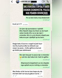 Në mesazhet e publikuara së fundmi, JOQ tregoi se si drejtoresha ka përdorur gjuhë kërcënuese dhe fyese ndaj një personi që e provokoi sikur ishte pjesë e stafit të spitalit. Ky i fundit që e kritikoi për dhunën ndaj ekonomistit, të cilit Irini Shehu i çau ballin me kapëse letrash.