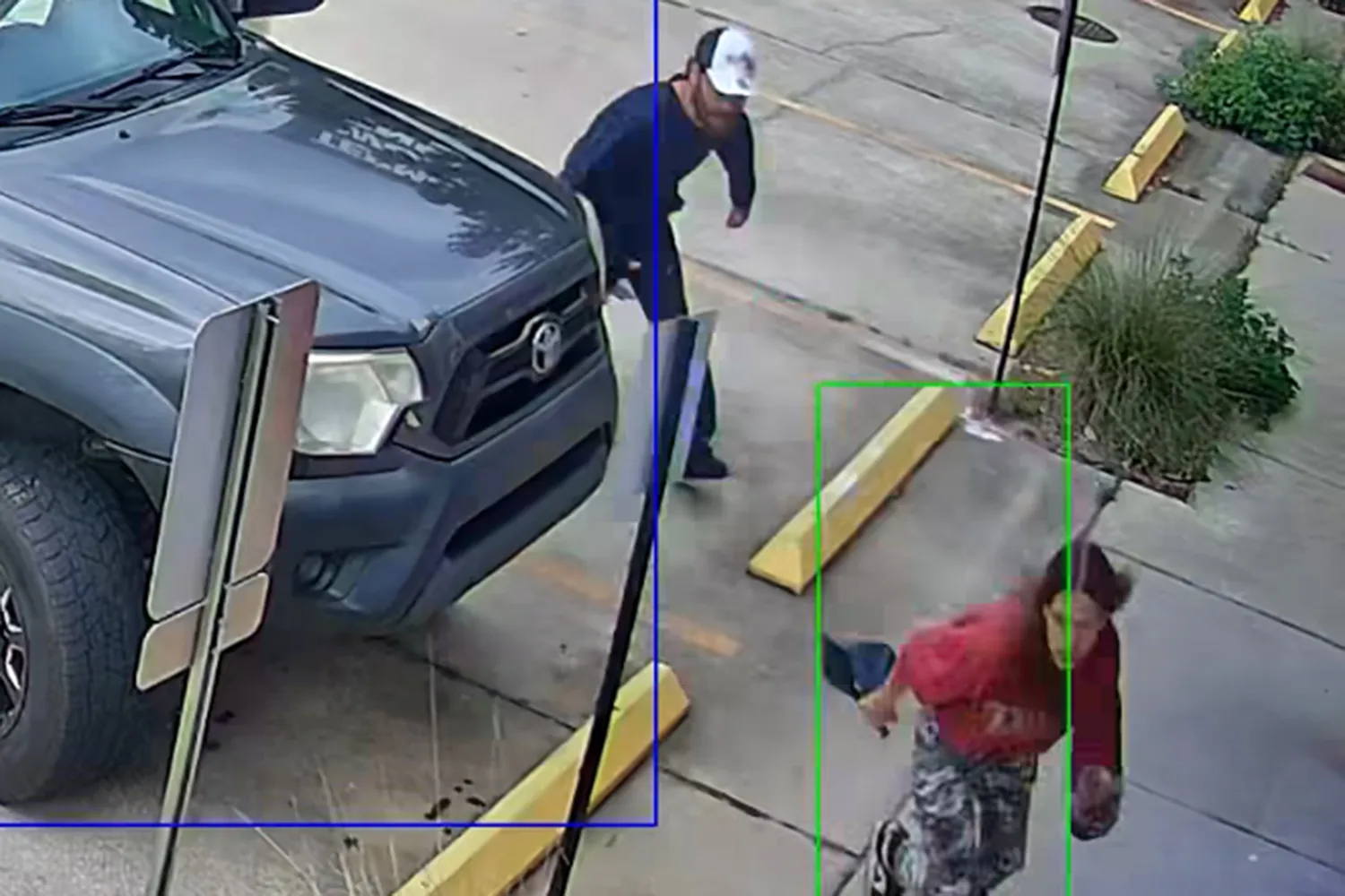 The 30-second video, shared on the sheriff’s official Facebook page, shows a man violently dragging a woman by the neck across a parking lot, attempting to shove her into the passenger side of a white pickup truck. As she screams for help and fights desperately, the man briefly manages to open the door and begin forcing her inside.