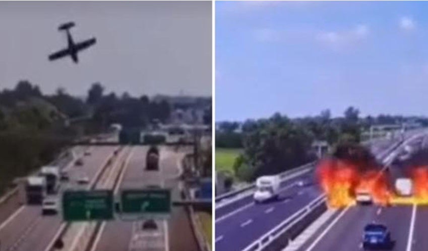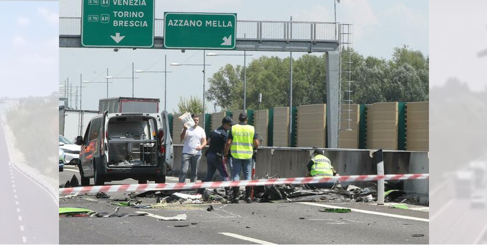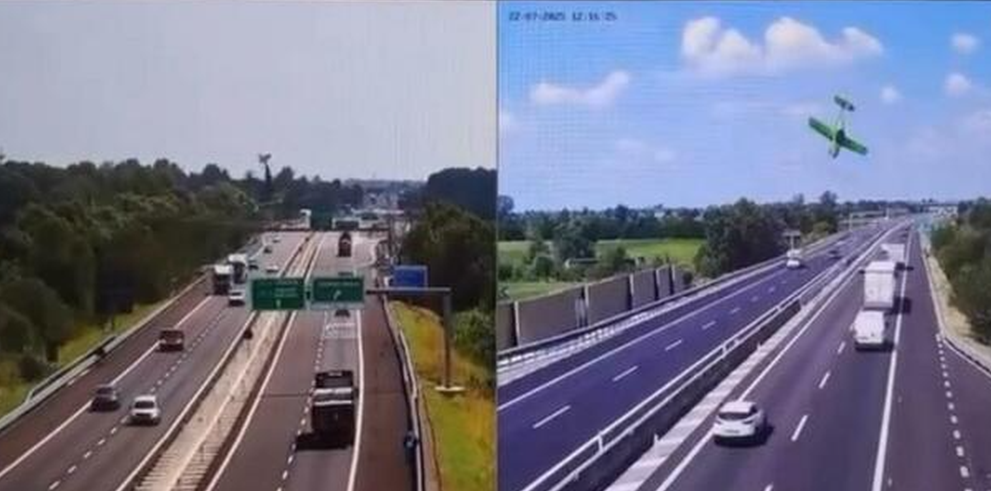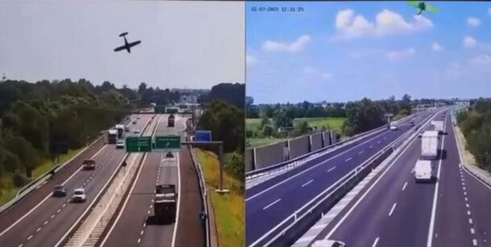 Pamjet tronditëse që tregojnë një avion të vogël teksa rrëzohet në njërën nga dy korsitë e autostradës Ospitaletto-Montichiari, e njohur si Corda Moll në provincën e Brescias janë publikuar në mediat sociale.
